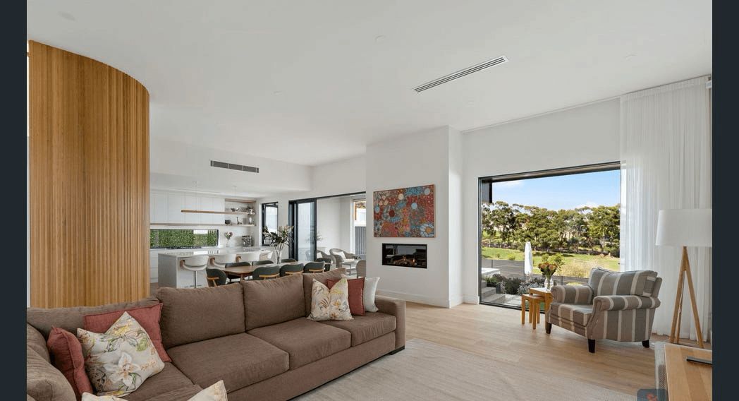 Upstairs, the master suite has been designed as a private retreat, complete with expansive views, a Juliet balcony, walk-in robe, and a well-appointed ensuite featuring a statement bath and vertical heated towel rails.