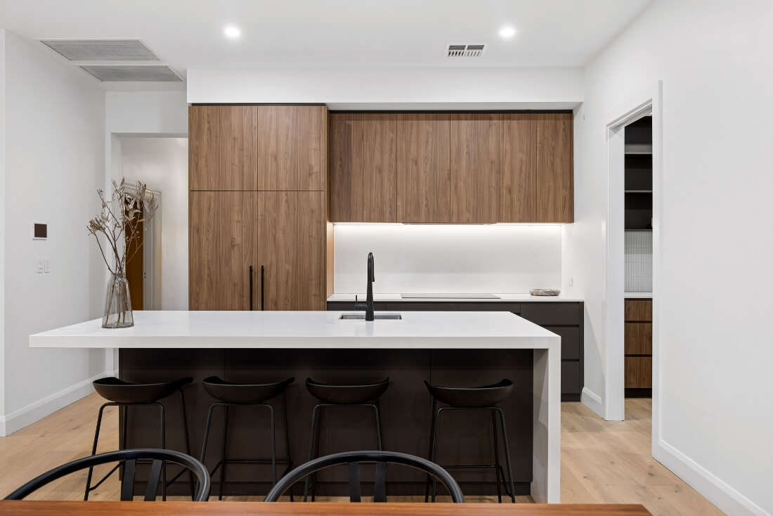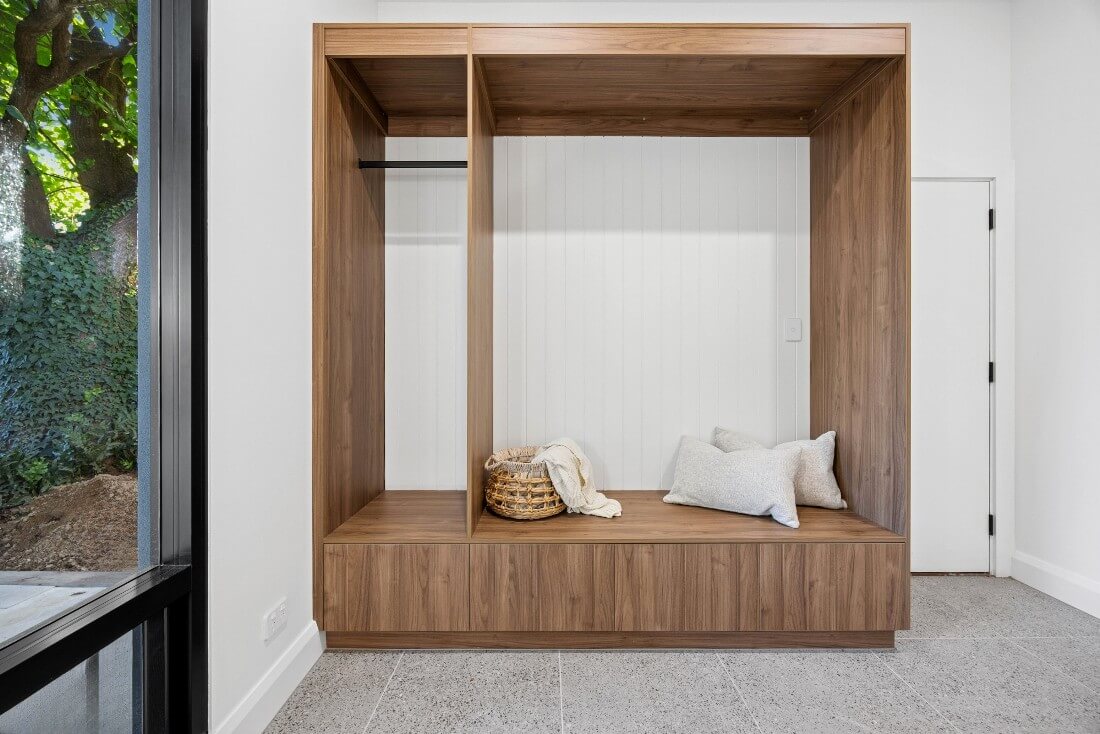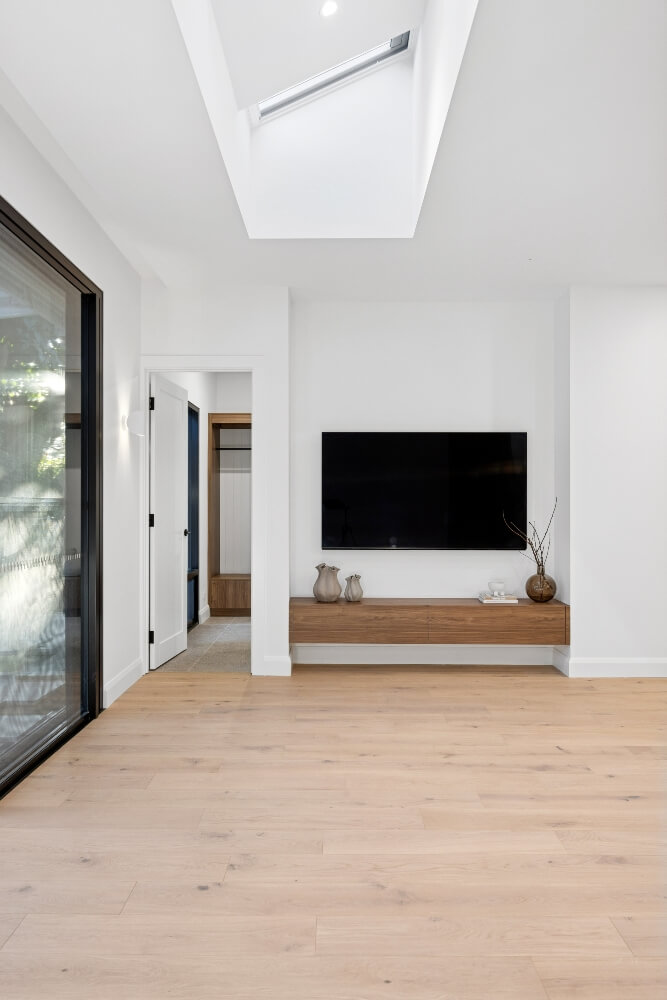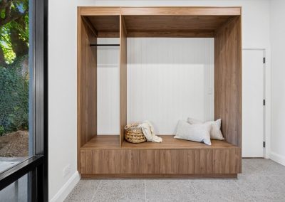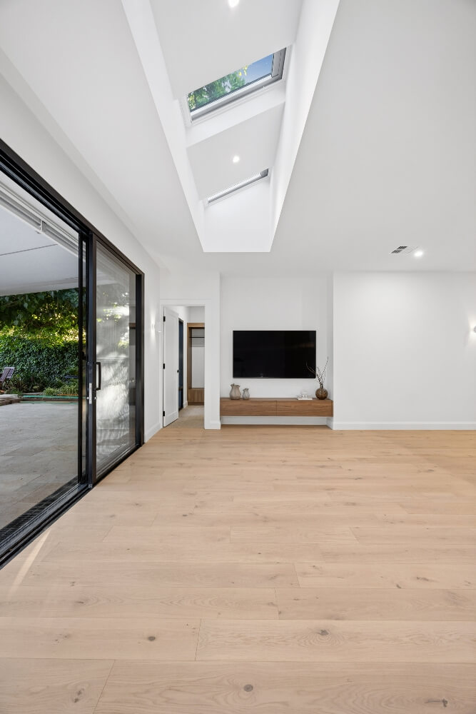 A major renovation of a grand Villa and its old ‘lean to’ . Existing floor area wasn’t the issue. The poky layout and ceiling height was. We kept the exterior double brick walls and footing. Changed and updated the poorly arranged internal layout to an open plan with generous kitchen, laundry , mud ,bathroom and bedroom wing. Used the strength of the existing structure to increase the ceiling height with a new roof that is befitting the traditional house. Skylights work wonders to a south facing living space and kitchen. Amazing what at reno can do !